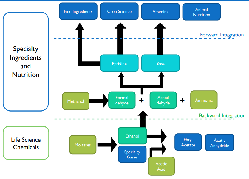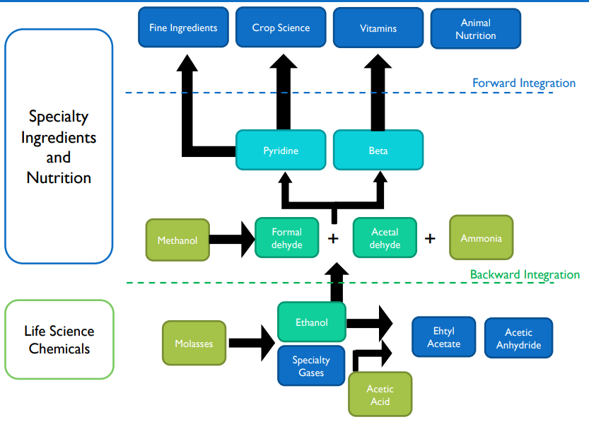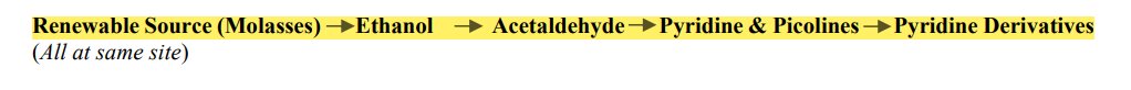 Company offers Specialty building blocks including Pyridine and Picolines (22% global market share), Cyanopyridines (26% global market share)