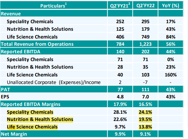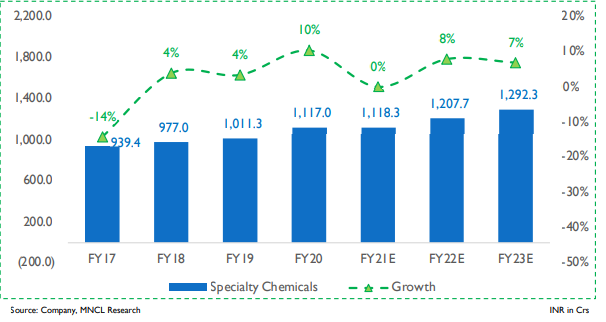 Their specialty chemicals business is further divided into 4 parts, namely -
