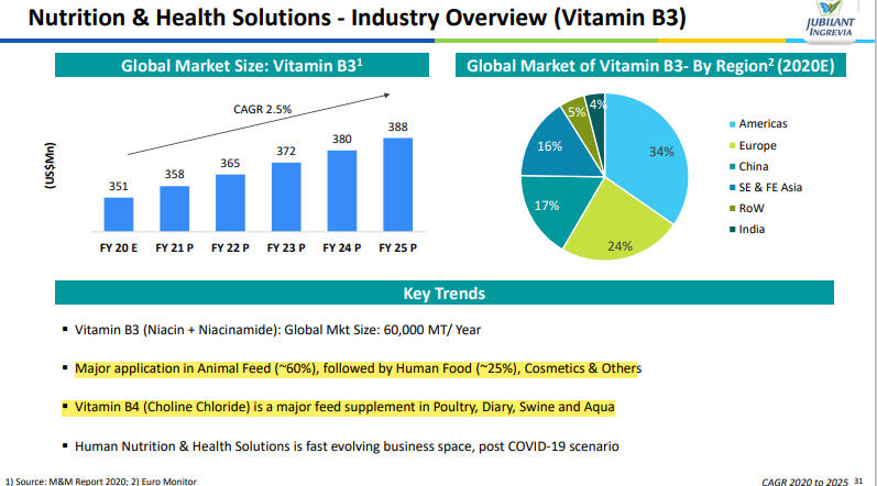 (Jubilant is the largest producer of Niacinamide and amongst global top two manufacturers of Vitamin B3 and India’s largest manufacturer of Vitamin B4)