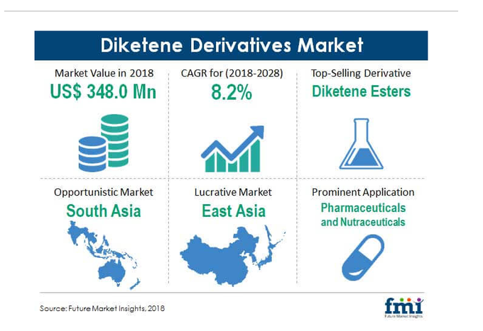 About 40% of this demand is serviced through imports from USA, China and Europe. In India, there are only few players in Diketene and its derivatives with Laxmi Organic (~55% market share), Lonza (30-35% market share).