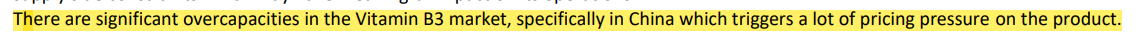 5. They're increasing capacity of Vitamin B3 which may lead to over capacity as troubles in china settles.