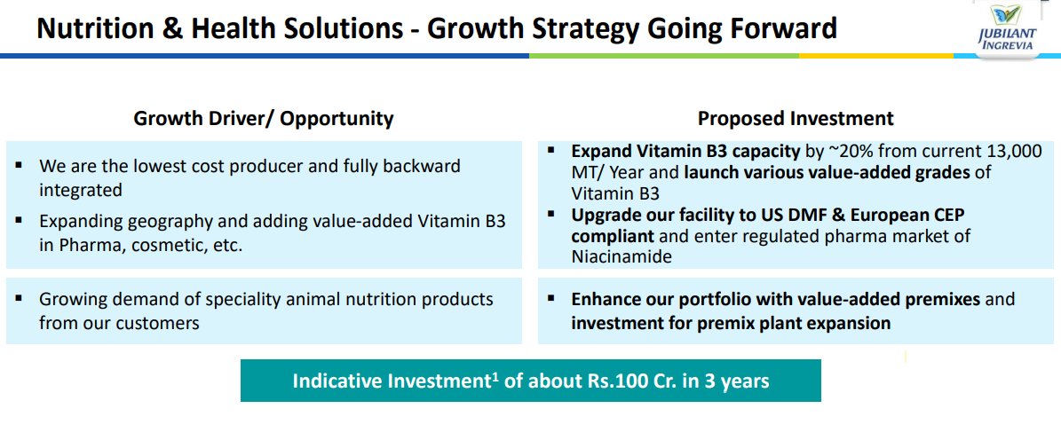 NURITION & HEALTH SOLUTIONS (18% of the revenues) - Jubilant is the largest producer of Niacinamide and amongst global top two manufacturers of Vitamin B3 and India’s largest manufacturer of Vitamin B4