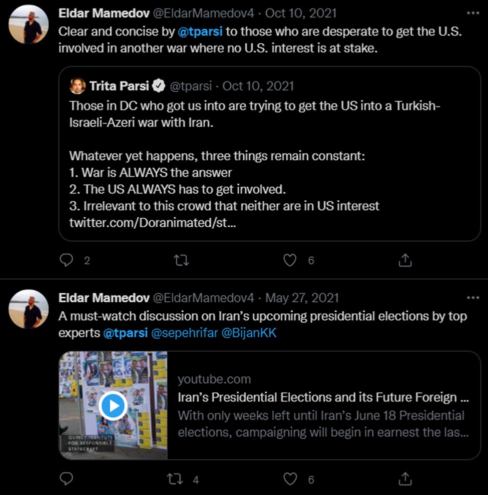 Mamedov is also quite fond of #Iran’s chief lobbyist Trita Parsi, founder of Iran’s DC-based lobby arm NIAC and currently Executive Vice President at the George Soros-funded Quincy Institute.
