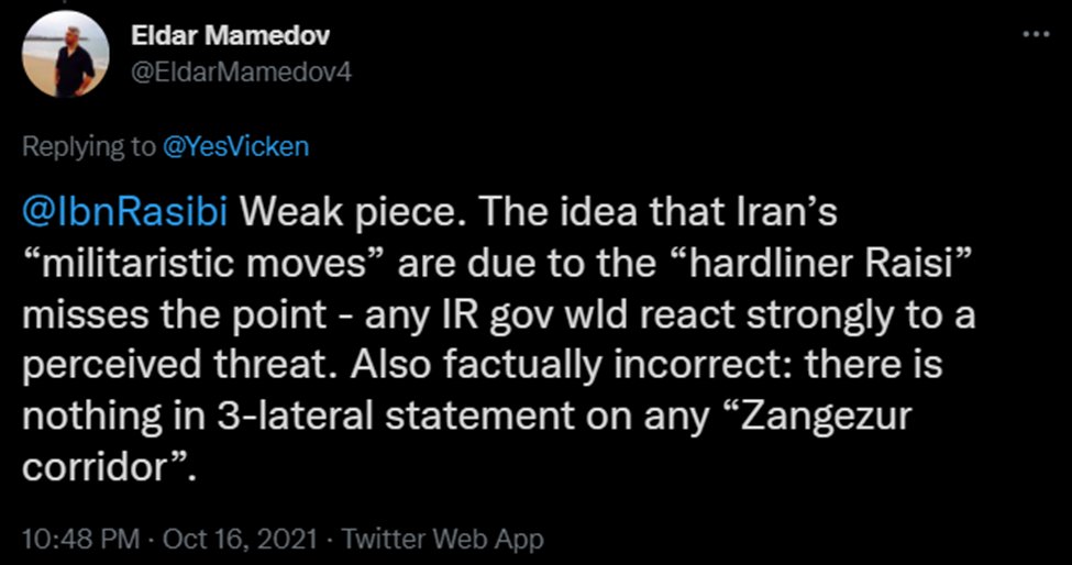 Another sign of Mamedov’s close ties with #Iran’s regime can be seen in his anger over the killing of Qassem Soleimani, Tehran’s terror mastermind.