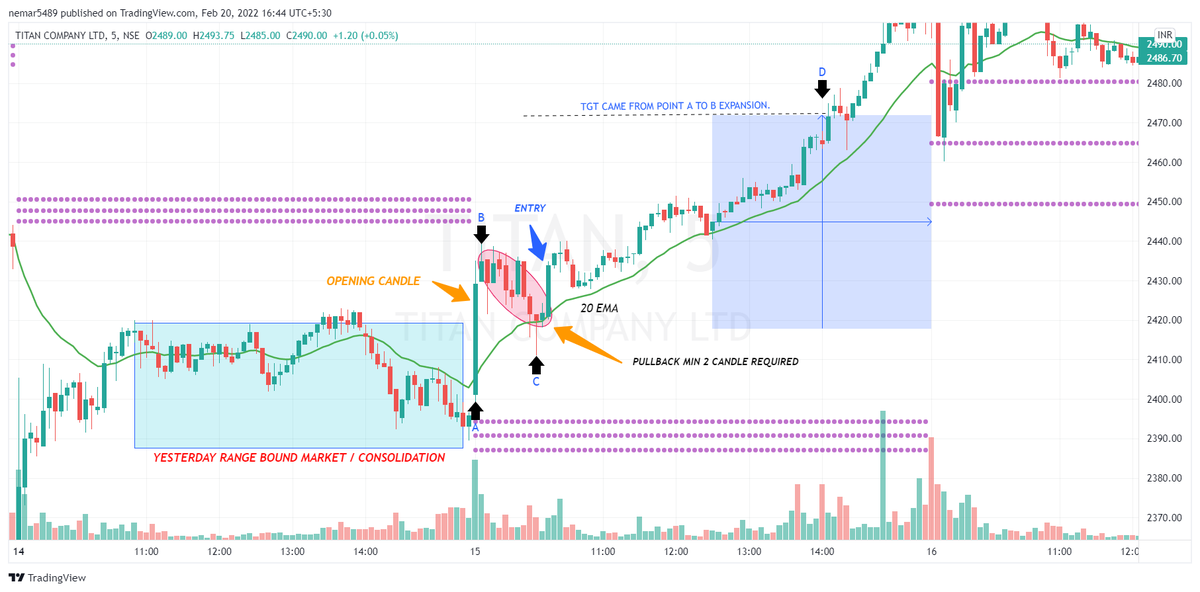 5. take entry when entry candle formed for bullish entry green bar for bear entry red bar make sure that size of entry bar should be greater than pullback candles.