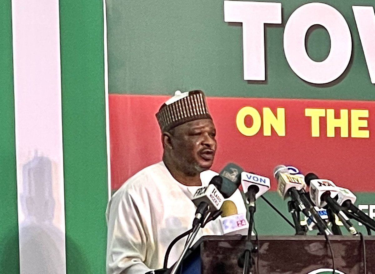 The Moderator of the #FGTownHallMeeting on the Achievements of The Federal Government in Infrastructure Development, Alhaji Lai Mohammed giving his Opening Remarks for the event.