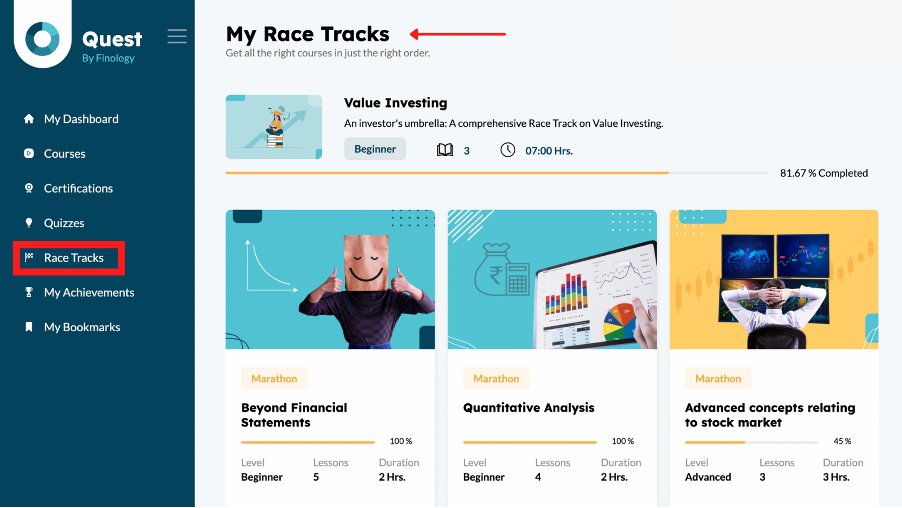 - Industry Analysis- if you wish to deep dive into industries and learn from experts, this Race Track is for you.
