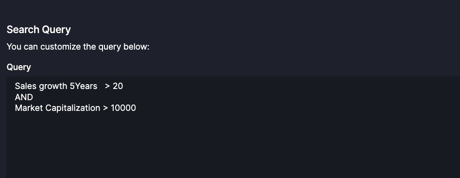 Think of screener as a way to "narrow down" the set of companies in indian listed universe.