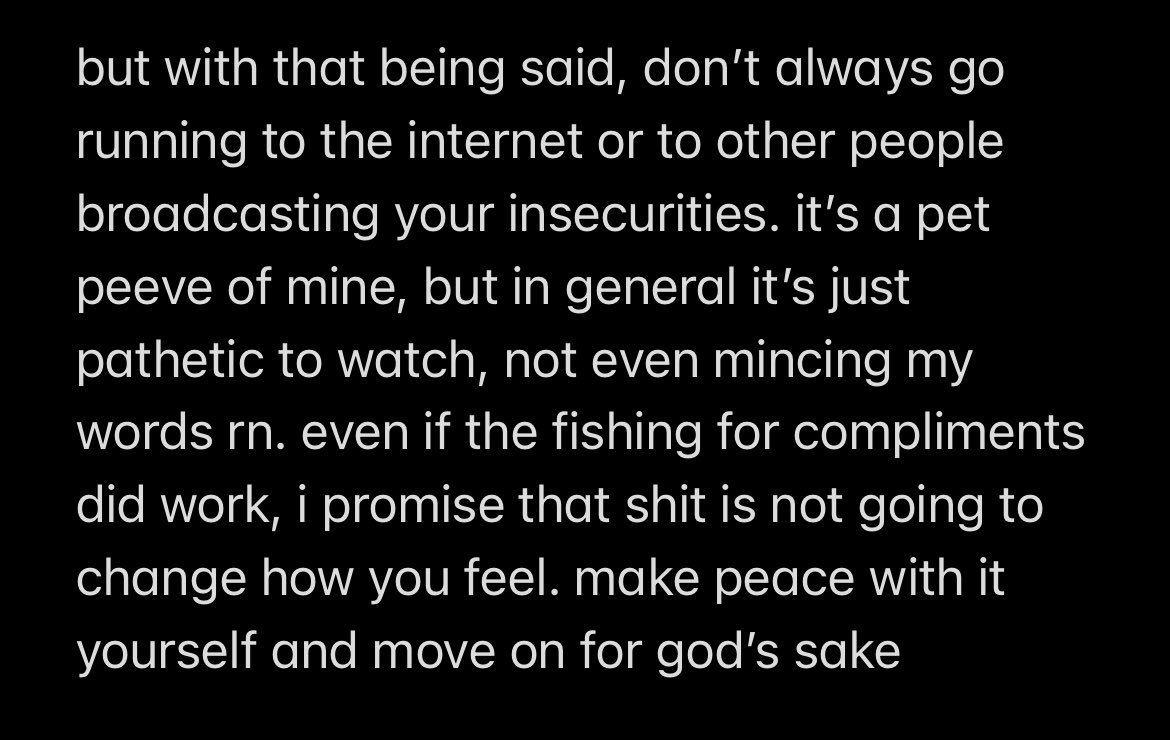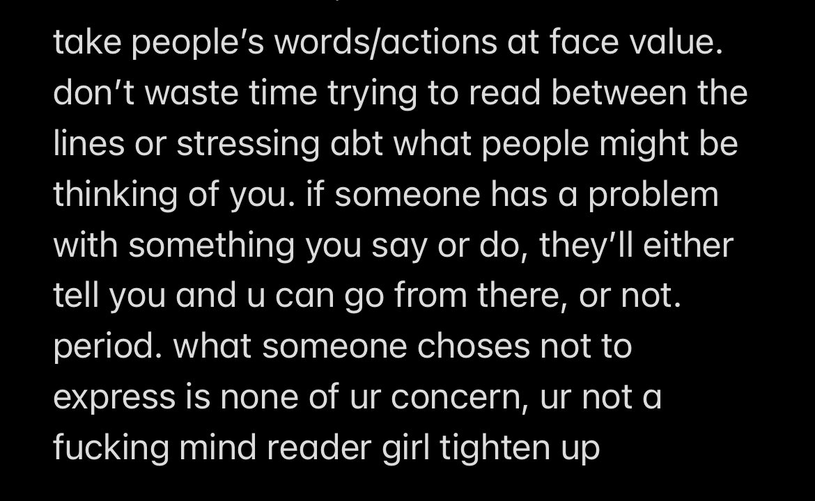 i really hope this is able to help and i also hope yβall know that none of this is bullshit, u can ask anyone, i used to hate myself and it fcking showed and now i am literally known for how much i adore myself. like the 180 was crazy so itβs totally possible to change ur mindset