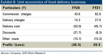 While most startups are focused on top-line growth, Zomato has understood the importance of profitability & it seems as if it is trying to improve its unit economics as in FY20 company was losing around Rs.30 per order, but in FY21 comp is making around Rs.20 per order.