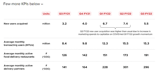 Also, the opening up of restaurants and the resumption of dining in services is affecting the food delivery business, as in the recent quarter the company witnessed a decline in the new users and monthly transacting users.