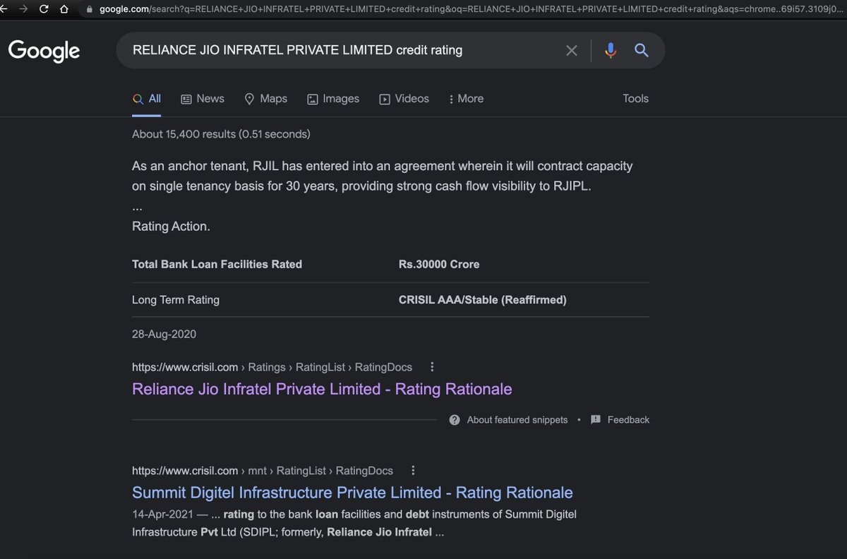 If i cannot find a credit rating report i look for the company on Insolvency and Bankruptcy Board of India. It can help us help us understand if a co has already had bankruptcy proceedings initiated against it.