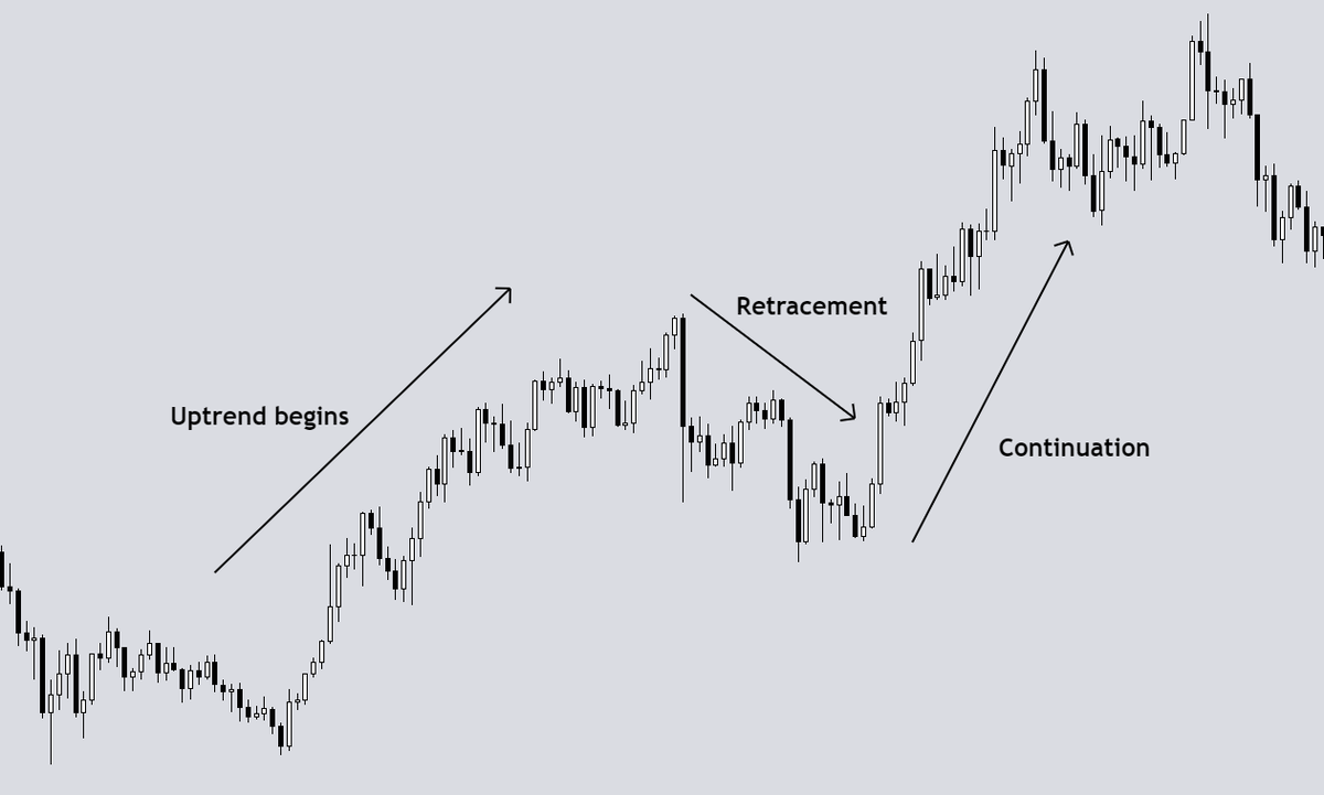 For example, in a strong uptrend, you have a retracement when the rise in prices is periodically interrupted by downward corrections.