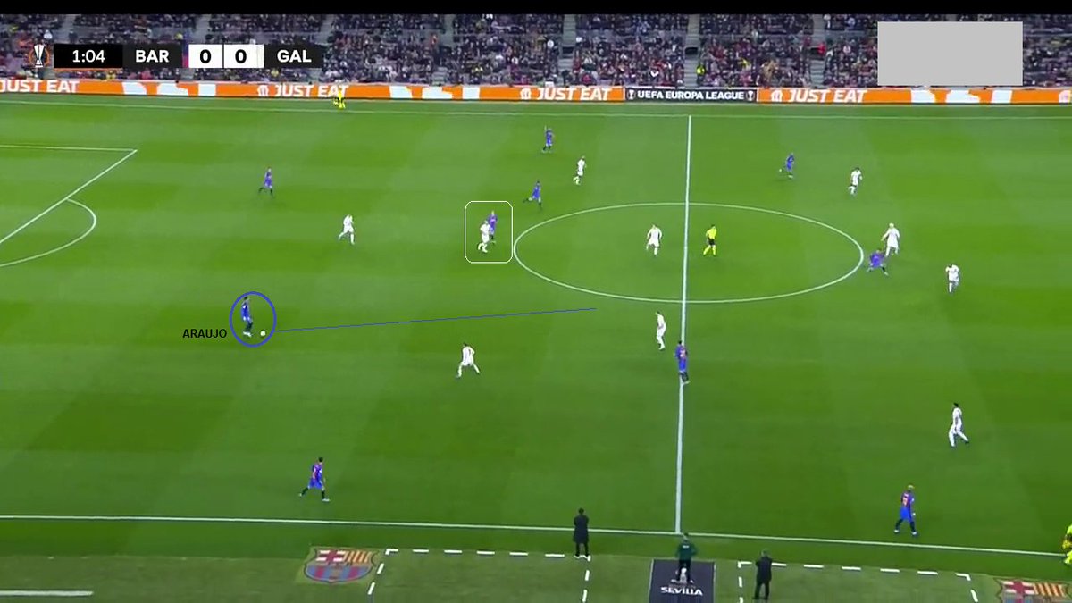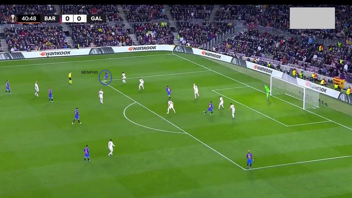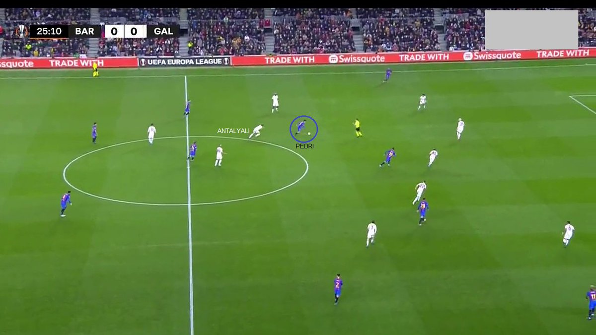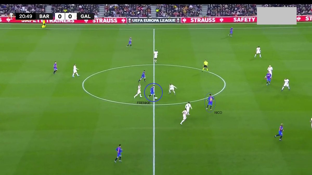 ⬅️ Araujo, Nico y Ferran. El FCB abrió muchos más espacios (amplitud con extremos) y el Galatasaray pasó a flotar a Eric, por lo que a través de él los de Xavi jugaron. Primero apoyándose en Memphis.