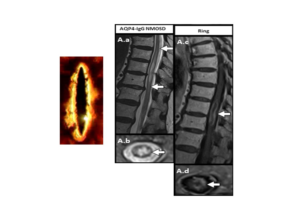 Imaging can help identify AQP4-IgG-NMOSD LETM too as this also often shows a ring like pattern of enhancement on gadolinium sequences.