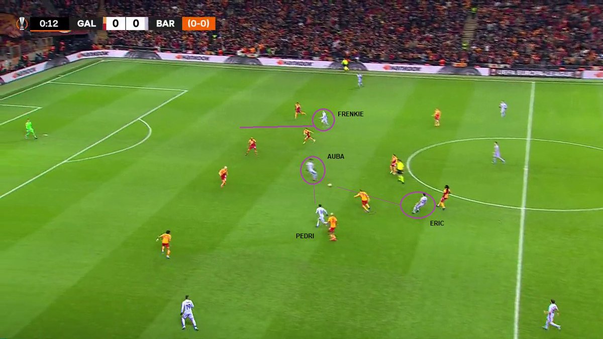 🎖️Esta para mí fue la mejor jugada del partido, porque creo que es justamente lo que buscaba Xavi con esta idea. Solo le faltó algo de acierto a Frenkie.