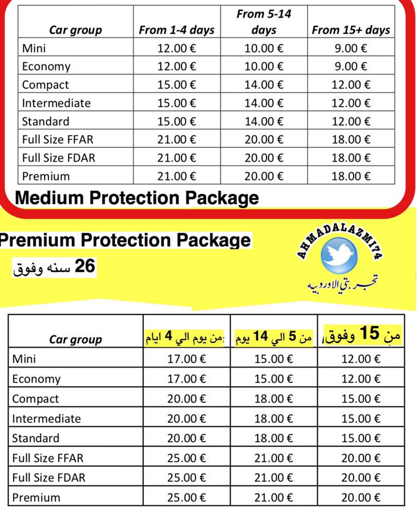 من شركة وسيط عدم اخذ تامين طرف ثالث توصل المطار وتاخذ تامين من الكونتر وهذي اسعارهم