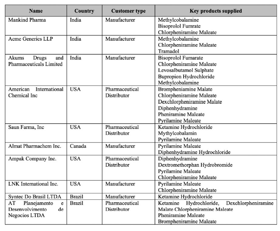 d.Supriya Lifescience has consistently been the largest exporter of ChlorpheniramineMaleate (antihistamine and anti-allergy) and Ketamine Hydrochloride (painmanagement) from India, contributing to 45%-50% and 60%-65%, respectively, of the API exports from India, between FY17-FY21