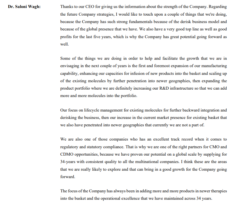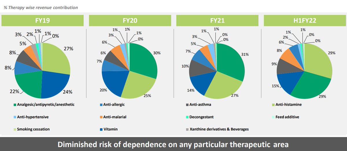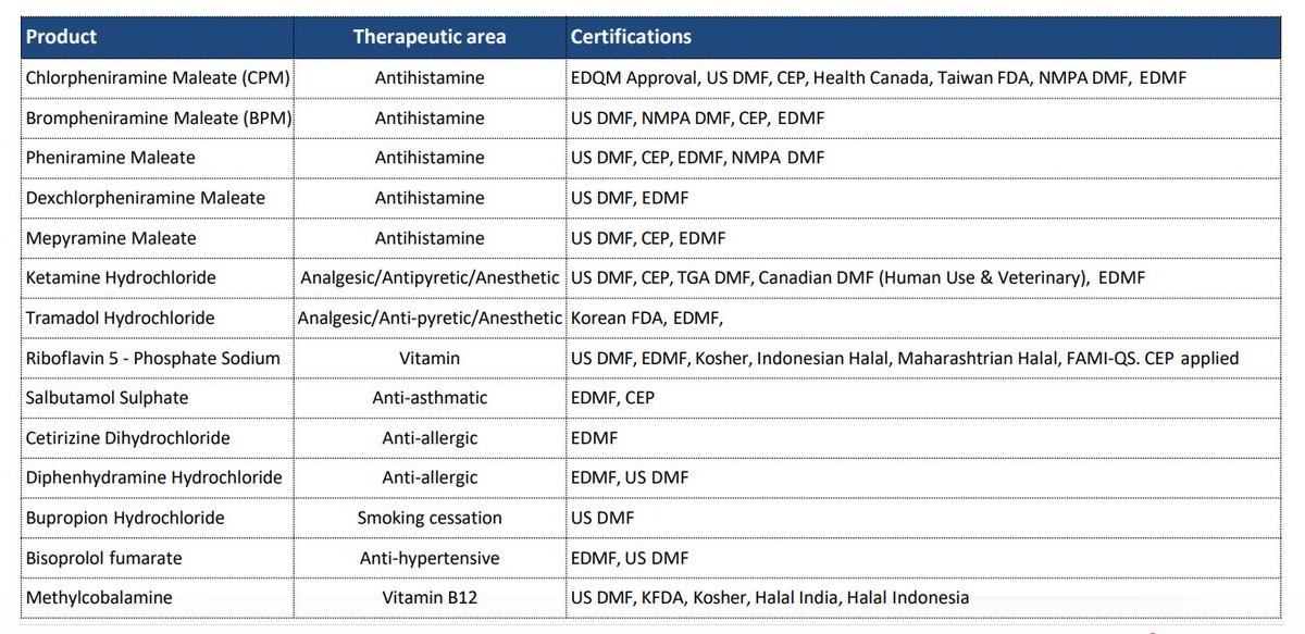 b. As of December 31, 2021, the company has niche product offerings of 38 APIsfocused on diverse therapeutic segments such as antihistamine, analgesic,anaesthetic, vitamin, anti-asthmatic and anti-allergic.