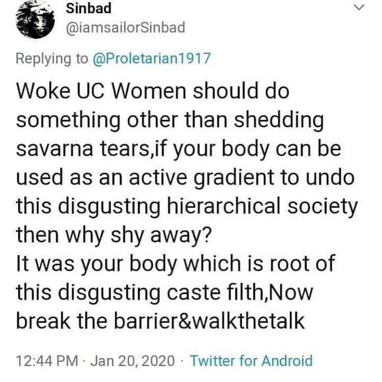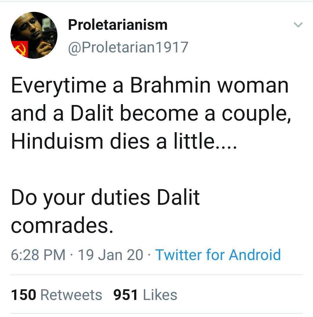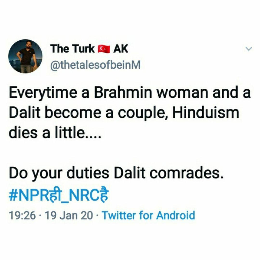 Being a Brahmin girl is tough in this society where Dalits want to marry for social justice, where Mμslims want to marry for conversion, where govt gives money for intercaste marriage as if we are toys. If this is a privilege then, We Never asked for it.