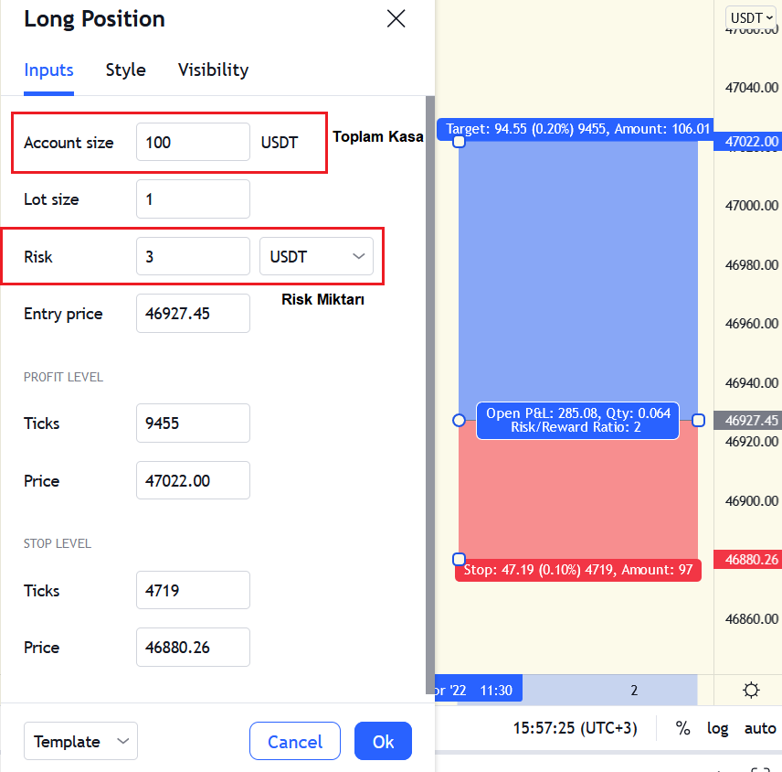 TradingView’da Bulunan Long/Short Toolu İle RR ve Kaldıraç Hesaplama