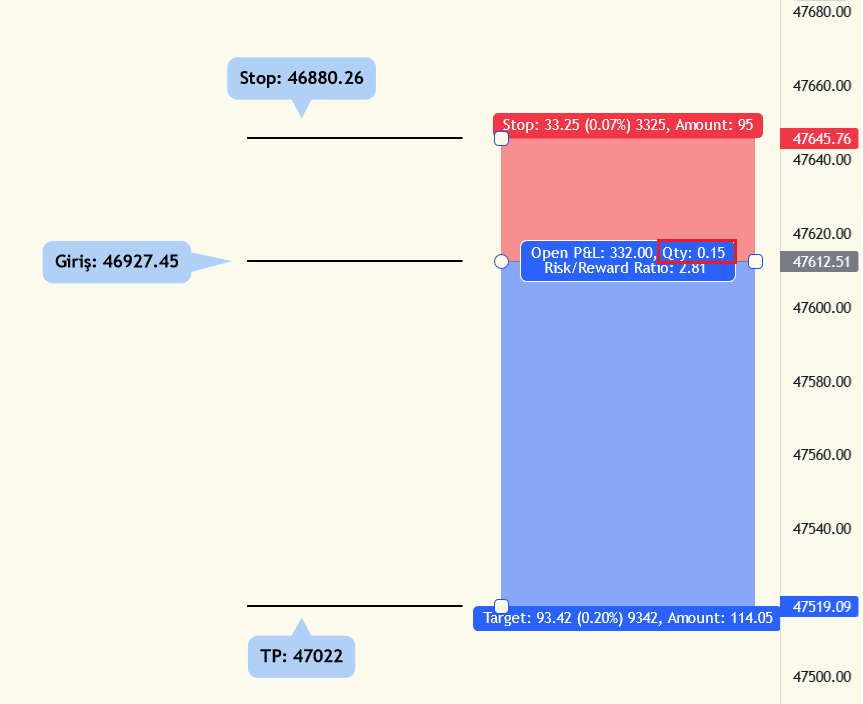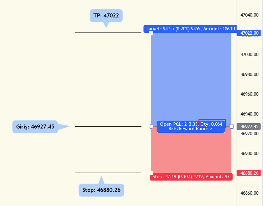 Yani farazi bir örnek verecek olursak %1 stop mesafesi olan bir işlemde en az %2 TP hedefi olmalıdır. Bu durumda 1 birim riske atılırken 2 birim kazanç hedeflenmektedir.