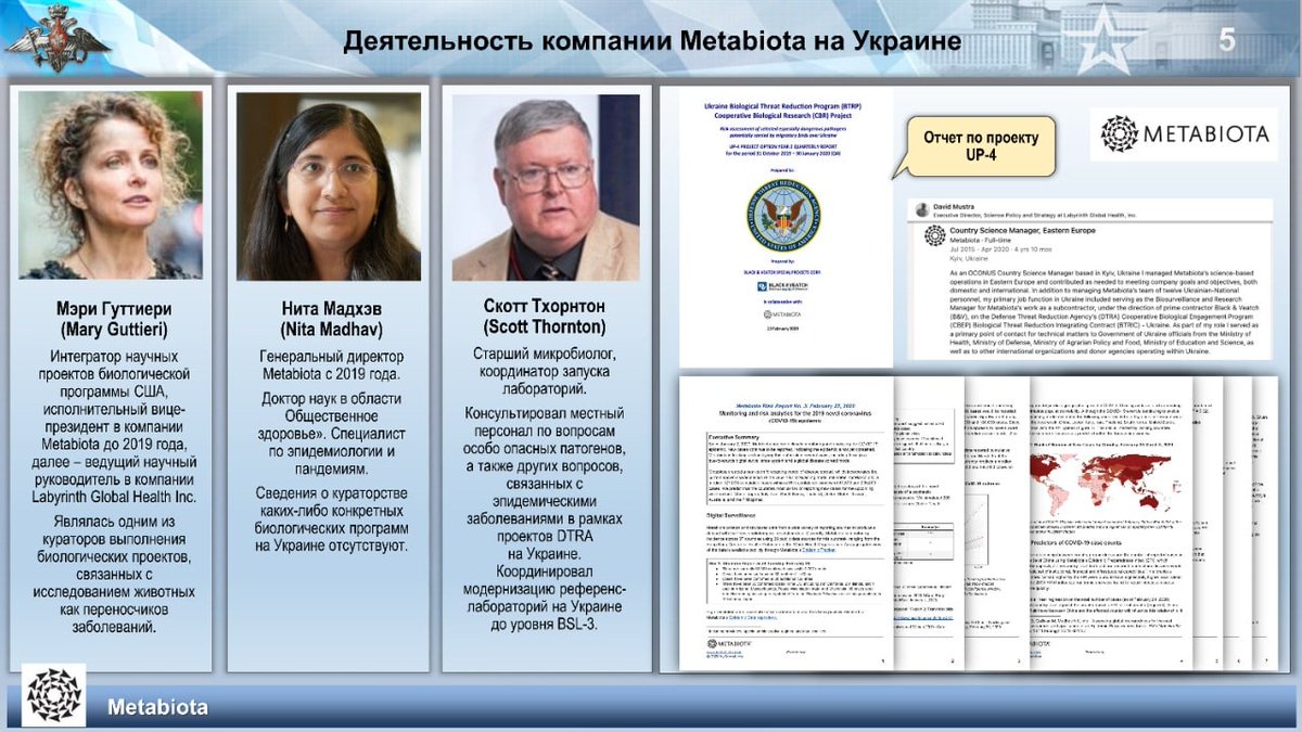 بالإضافة إلى ذلك ، شاركت الشركة من قبل #البنتاغون في نمذجة الوضع الوبائي في الفضاء على أراضي #أوكرانيا ، مثلت ميتابيوتا ماري جوتيري ، نائبة رئيس الشركة والمقربة من #هانتر_بايدن . أشرف سكوت ثورنتون على ...