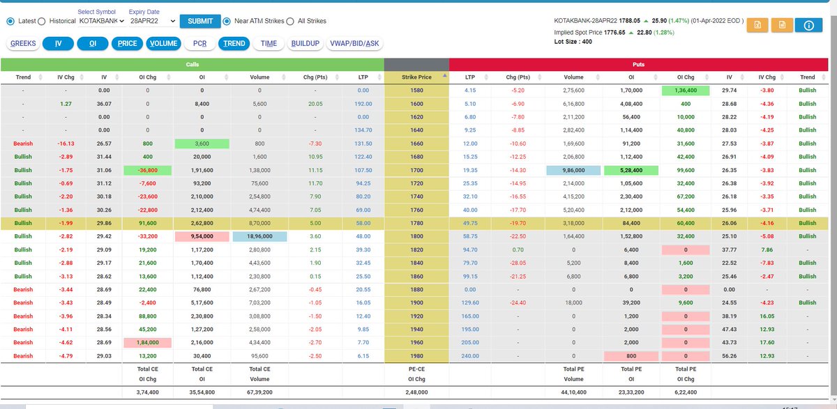 is mainly lead by second rang banks. Means a large chunk of them performing together on upside to take care of underperformance of ICICI and Kotak Bank. So its a clear sign of buying in BNF Index stocks across the board. Now lets do some OC analysis of Kotak and ICICI Bank.
