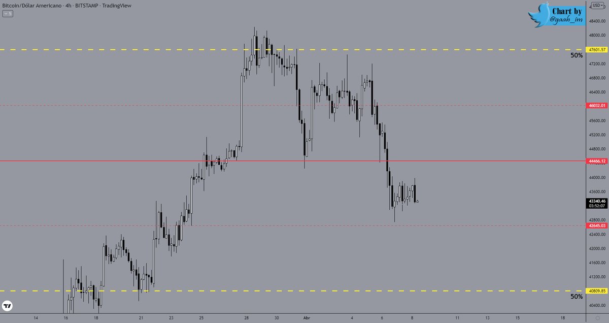 If price truly breaks that level (as occurred, candles closing below $44.4k), the higher probability is for price to fetch $40.8k and not $47.6k.