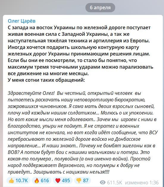 By the way, the idea to bomb the stations to prevent evacuations belongs to the #Ukrainian traitor and separatist Oleh Tsarev. Two days ago, he called for an attack on railway junctions to "paralyze traffic for many months"