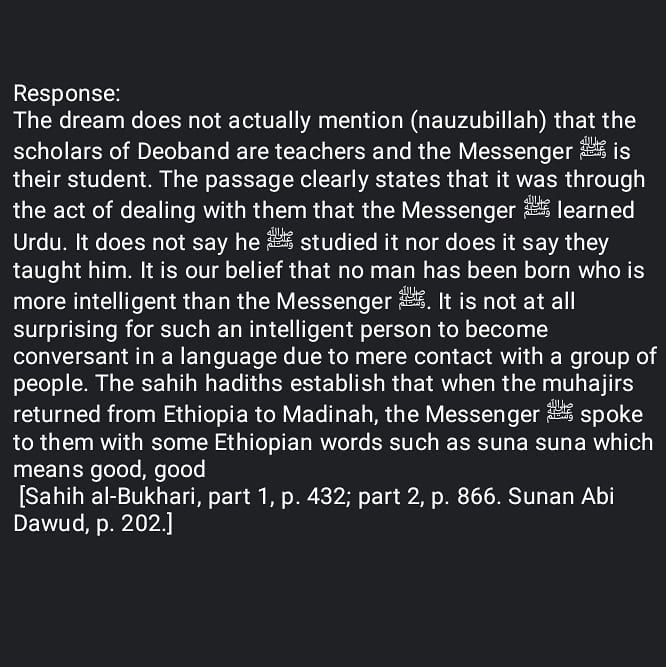 He ﷺ replied, "This Language was known to me since I began dealing with the scholars of Deoband."