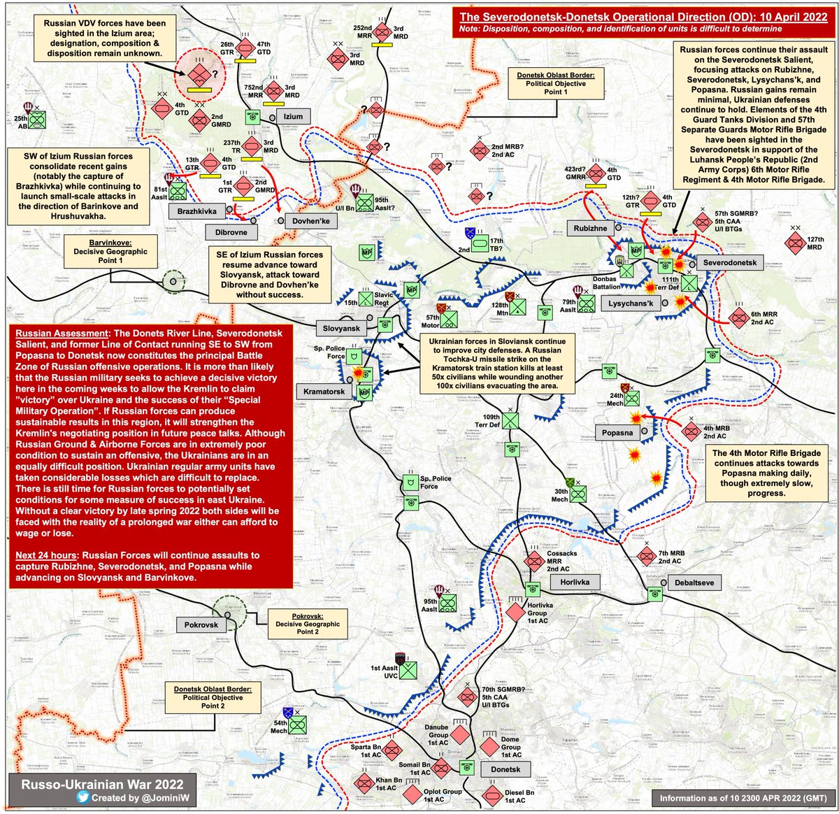 5/ The Ukrainian General Staff stated in their 07 April Operational Update that 5x BTGs remain in the Kharkiv area. Tying down Ukrainian forces in Kharkiv denies their ability to allow for significant counterattacks in the Severodonetsk-Donetsk Operational Direction.