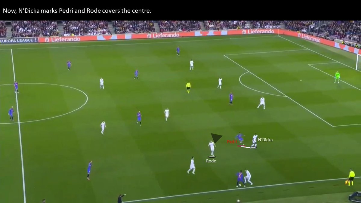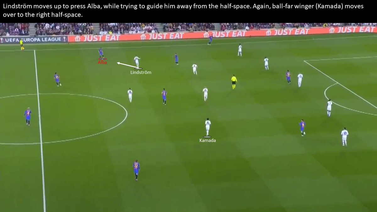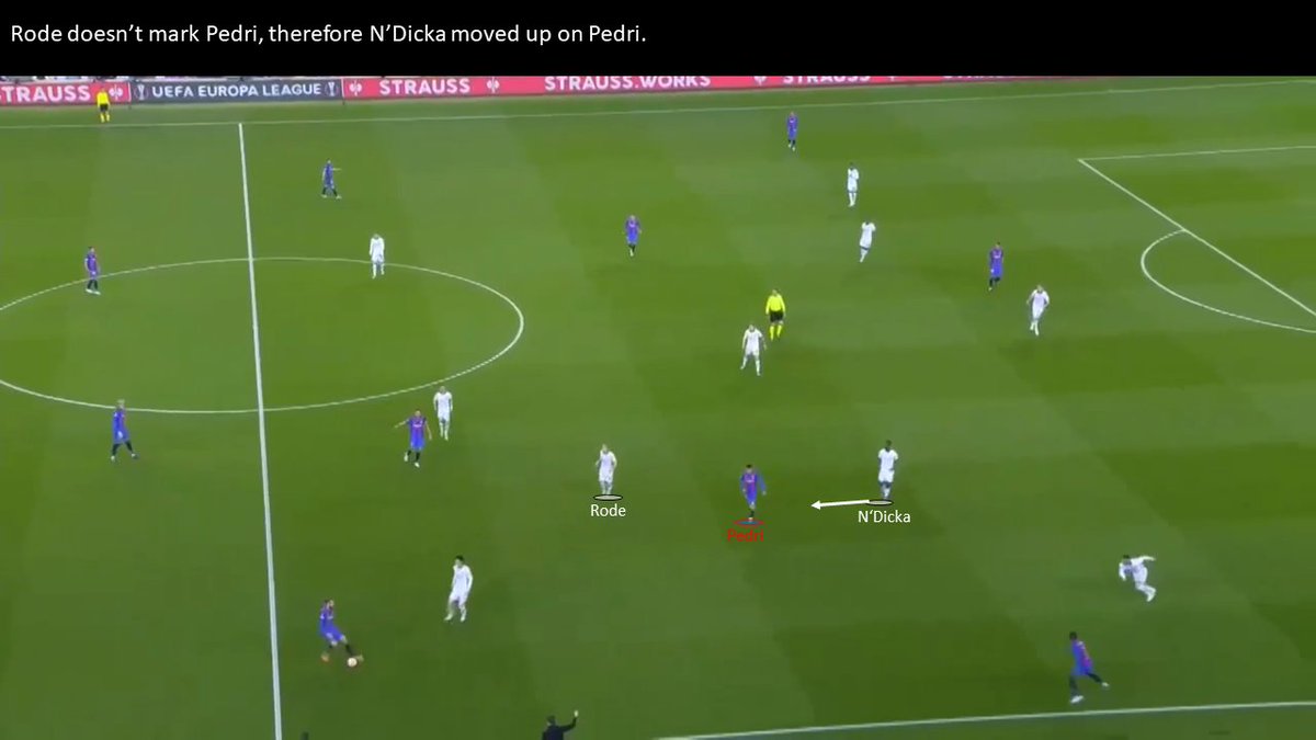One of the fewest ways to progress for Barcelona have been the wingers (especially Dembele). Barcelona constantly looked to isolate them in a 1v1 situation. Especially in the beginning, Frankfurt struggled to stop the wingers.