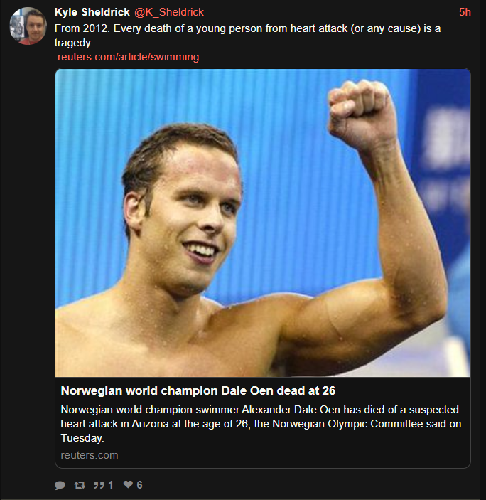 In order to attempt to justify his vitriol, Kyle dug deep to find an athlete under 30 who apparently died of a heart attack.