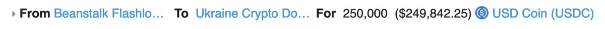 The first proposal (proposal #18) steals all the money in the contract. The next proposal (proposal #19) sends $250k worth of $BEAN to the Ukraine donation address. This Ukraine proposal is *named* Bip18 (instead of Bip19) and may have been used to avoid suspicion.