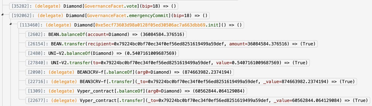 As an interesting side-note, there's a ~1 day delay for *all* governance actions in the $BEAN contract. The attacker actually set this whole thing up yesterday when it made two governance proposals.
