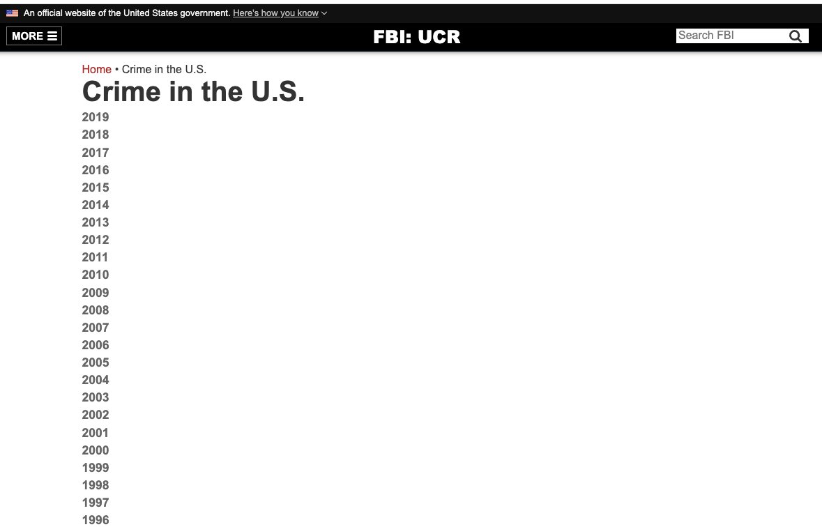 FBI crime data explorer: crime-data-explorer.fr.cloud.gov