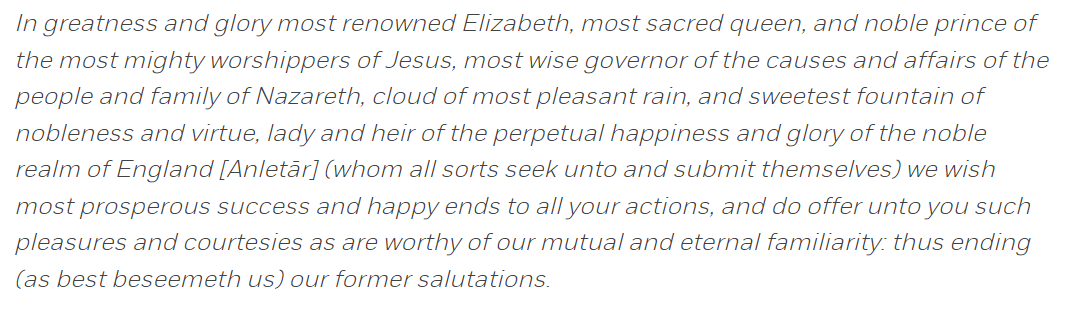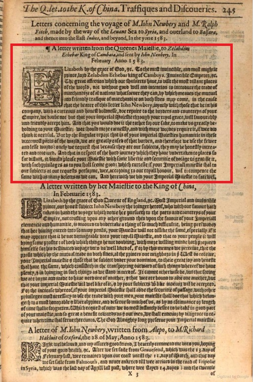 Interestingly, the letter was addressed to the right recipient, just with the wrong designation. What Elizabeth had thought to be the king of Cambay was actually the Emperor of India.