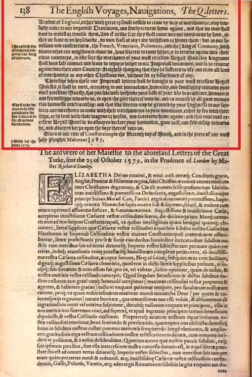 Many letters were exchanged between the two monarchs. Elizabeth wrote to him about how she and Murad both had a common adversary in Catholicism. She reminded him of the Crusades and even drew his attention to the myriad parallels between Protestantism and Islam.