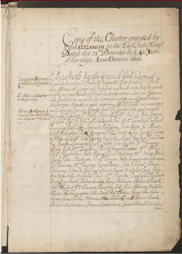 Three years after the first letter, the queen granted charter to a new company.