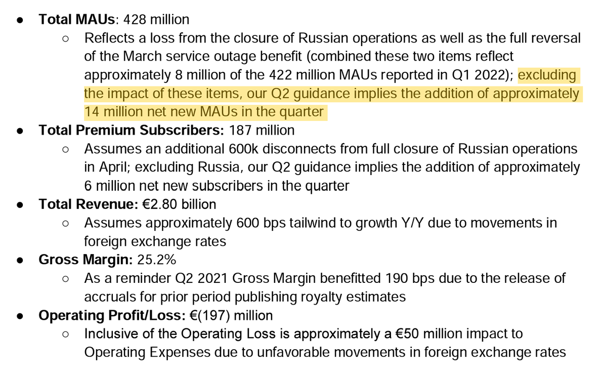 3/ ARPU was +6% in Q1 (3% on constant currency); but since last year's price increase also comes to anniversary, SPOT expects ARPU to end flat to slightly up in 2022