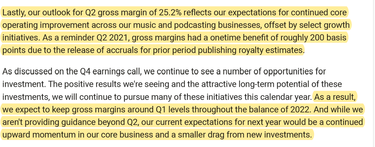 6/ "structurally, podcasting should be a better business model than music from a gross margin perspective"- my guess is this is becoming "show me" story before investors start believing in it