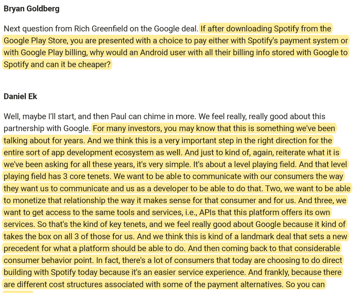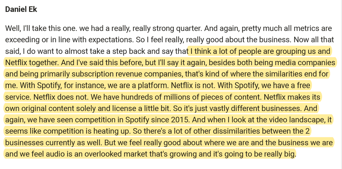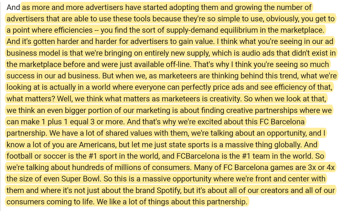 Spotify will discuss more about podcasts and audio opportunity in the upcoming Investor Day this quarter.
