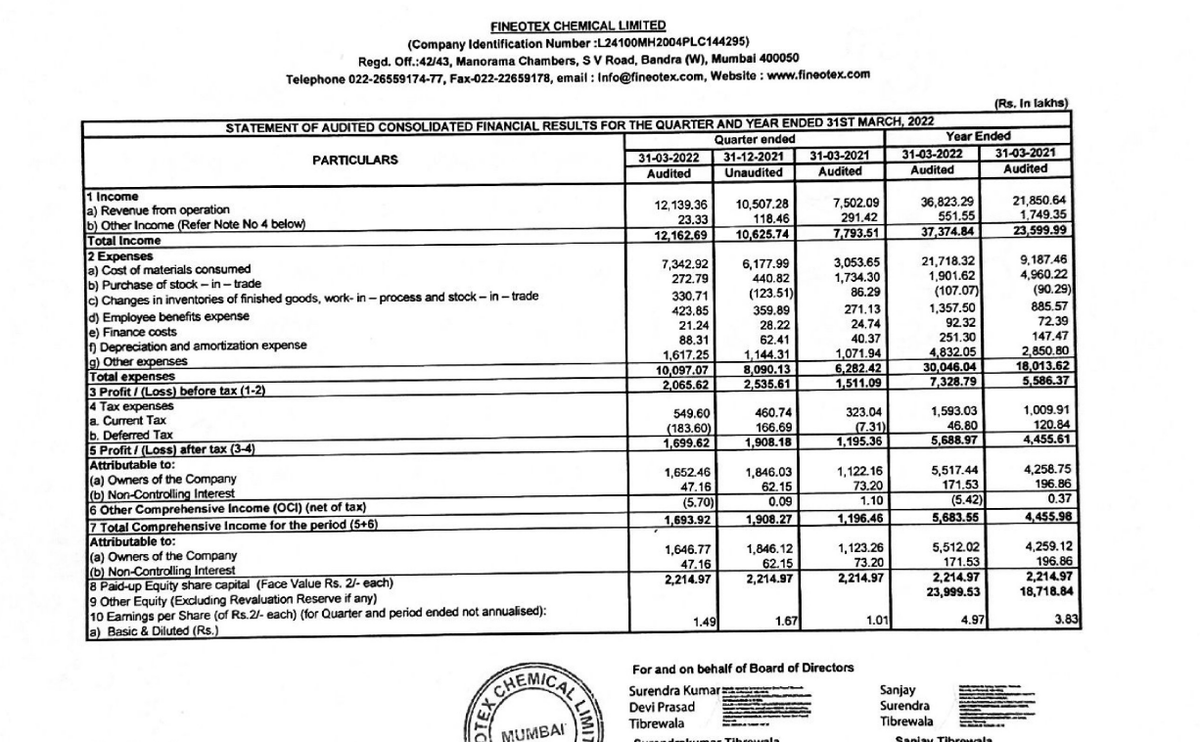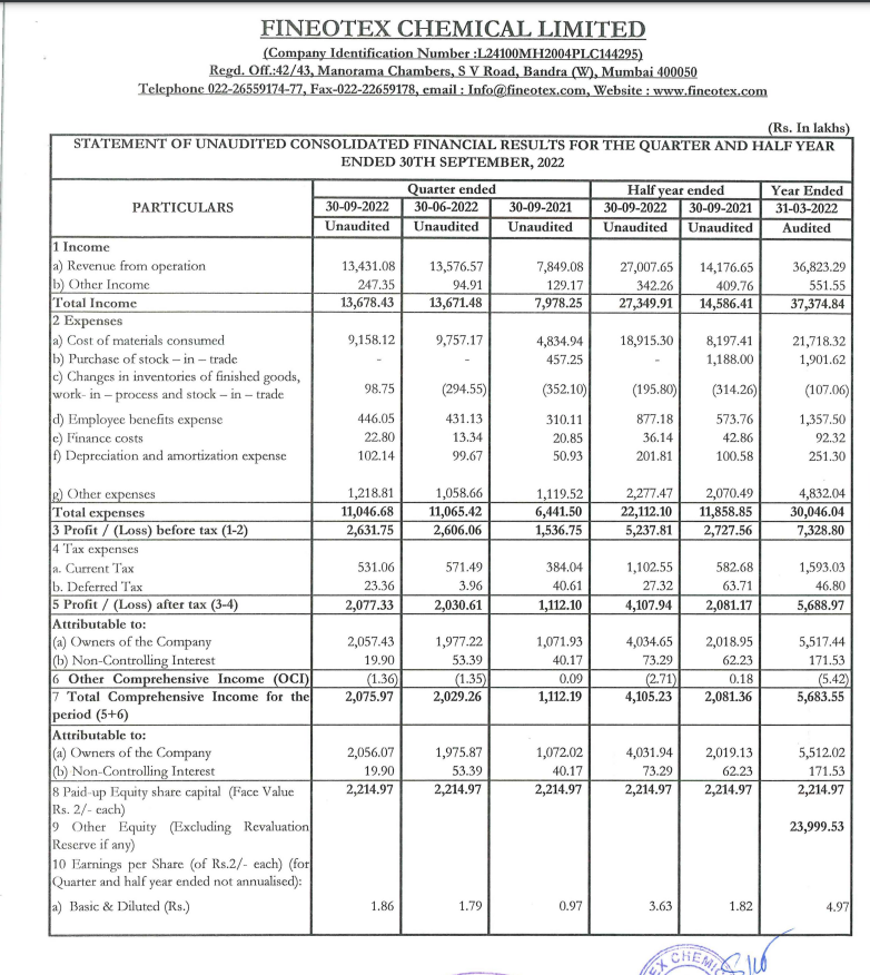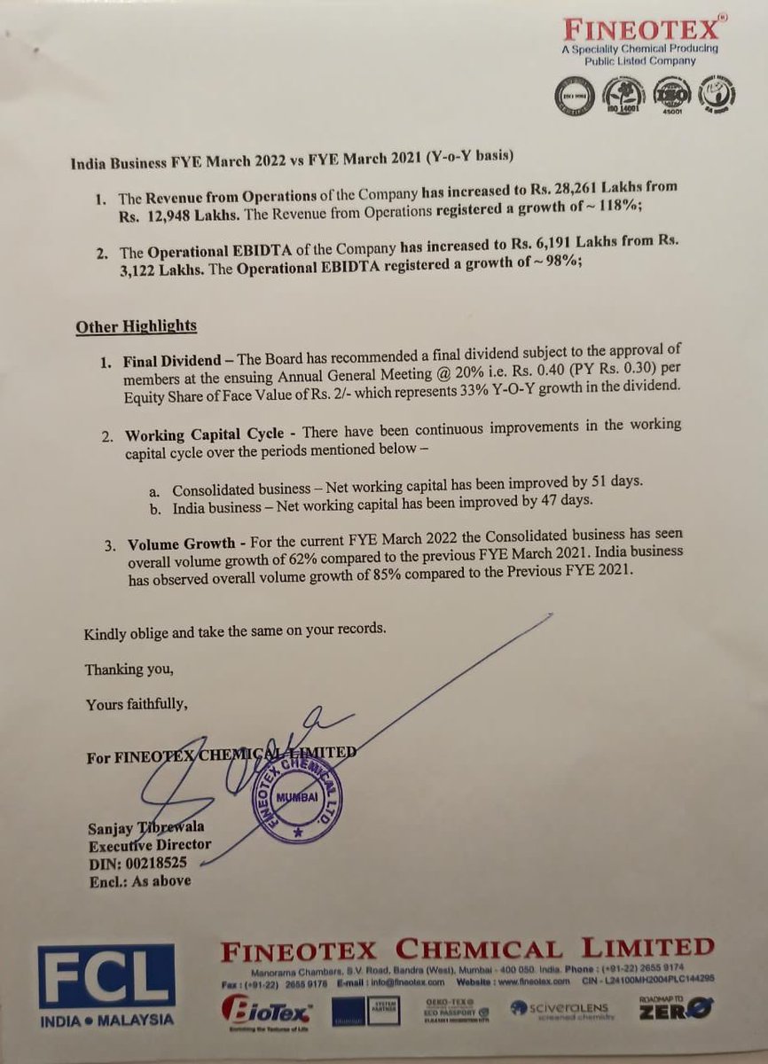 Fineotex chemicals- Ambernath utilisation 40% and increasing , new capex .