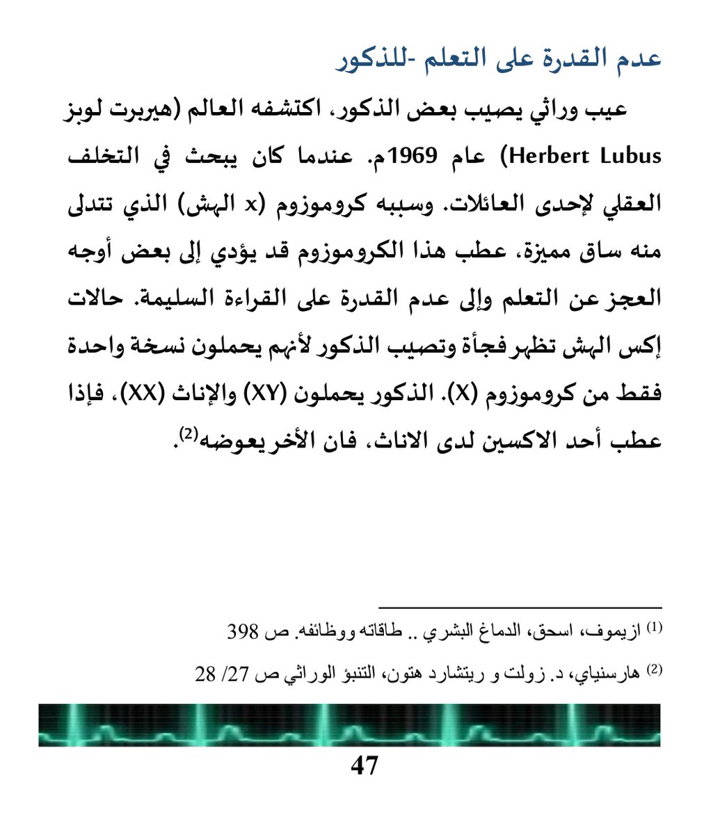 4 حالات اكس الهش، يصاب بها الرجال لانهم يحملون كرومسوم X واحد، فاذا تعرض للعطب كان سببا في تأخر بعضهم دراسيا، بعكس النساء الذين يحملون عدد ٢ X فان عطب احدهما، يعمل الاخر بديلا عنه.