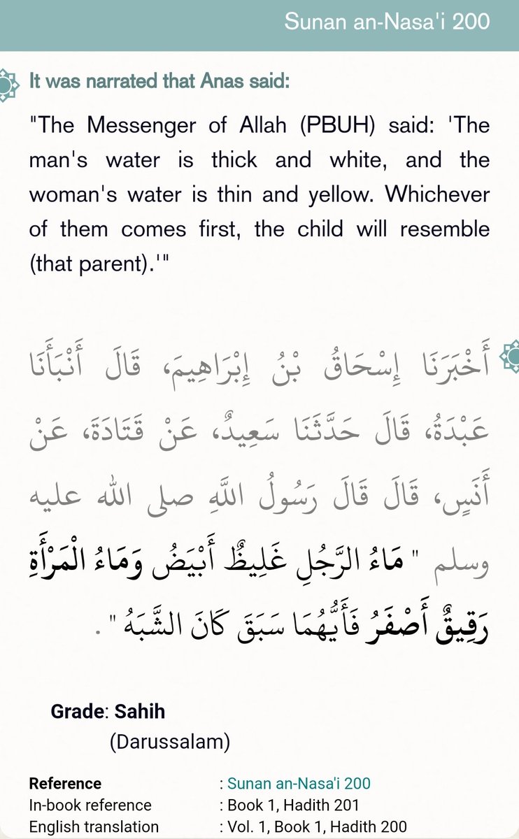 The prophet corrected this understanding and said the women, just like the man, has genetic fluid like him and contributes to the genome of the child.