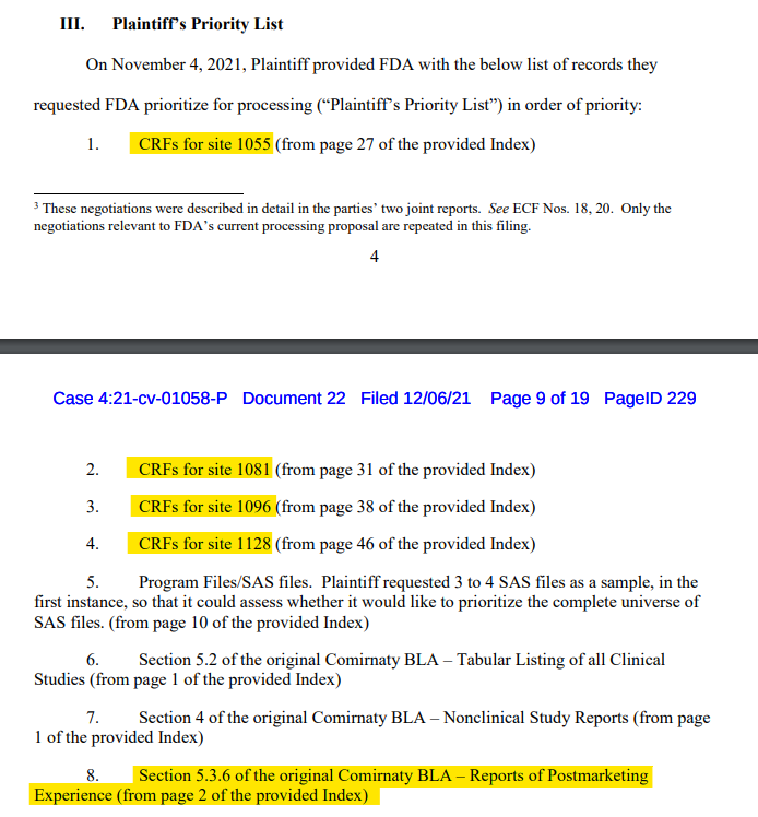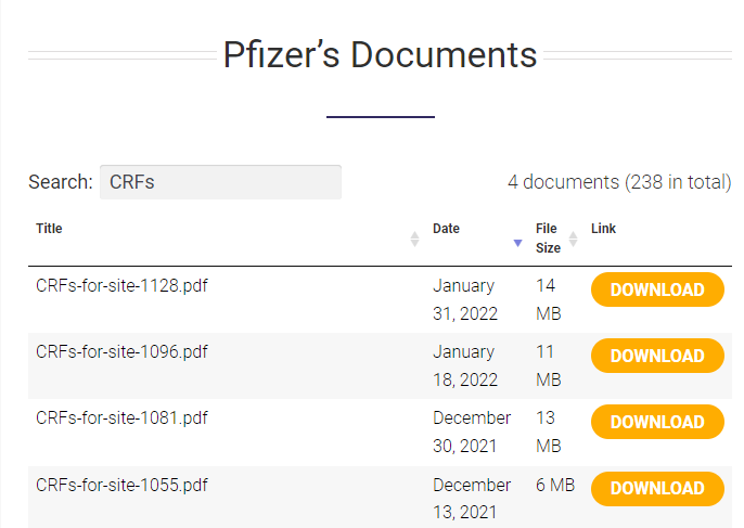 (1) The FDA only have 3% of the CRFs because only a sample were provided by Pfizer (which would contravene ICH-GCP and make the study subject to a full investigation)