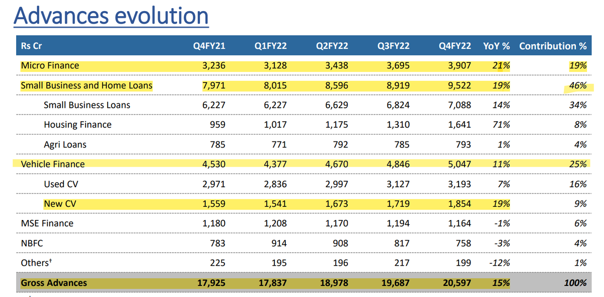 Gross Advances up 15% YoY to 20,597Cr (Not so great) Small business loans up 19% (46% of overall advances)