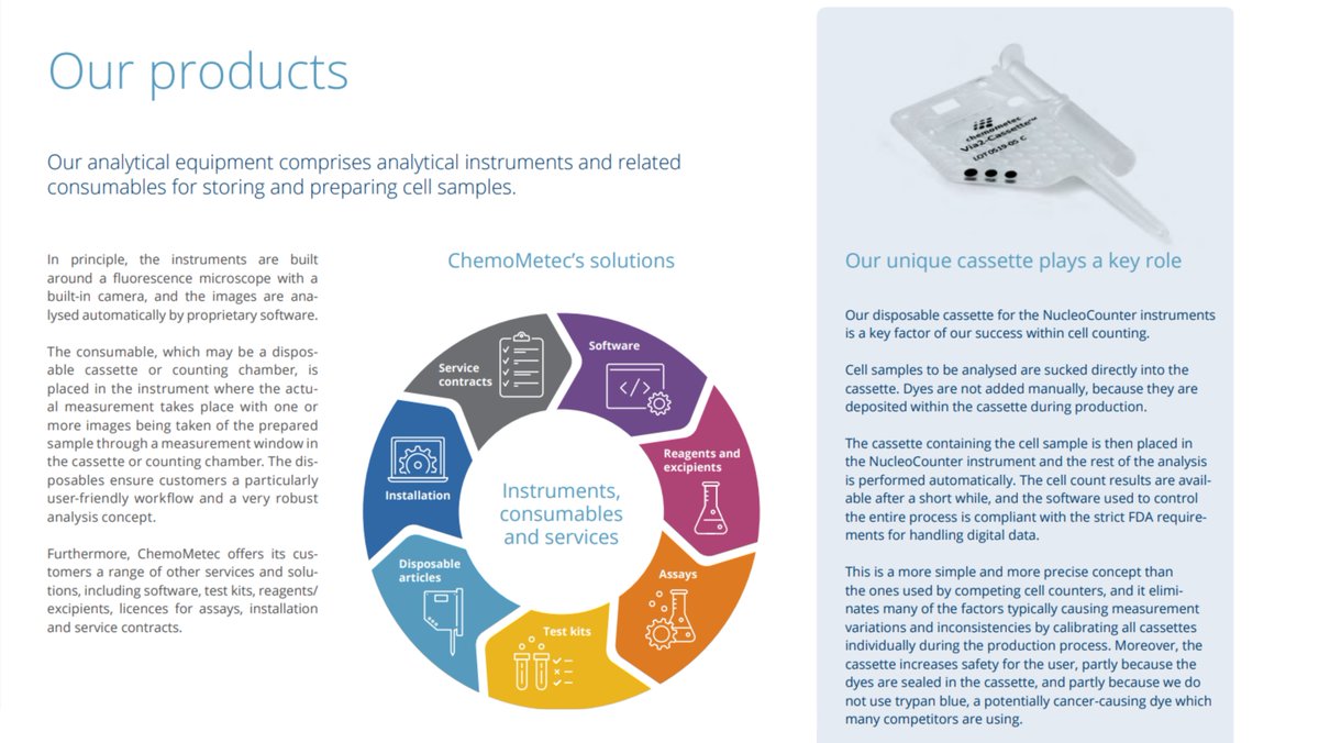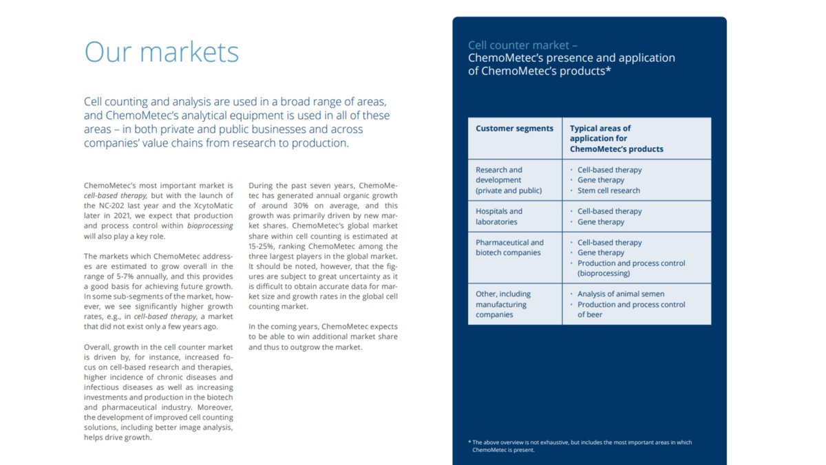 LTM EBIT margin 46% ChemoMetec is a worldwide leading manufacturer of cell counting and analysis equipment, with a client base across cell-based immunotherapy, cancer and stem cell research, and drug development/research.