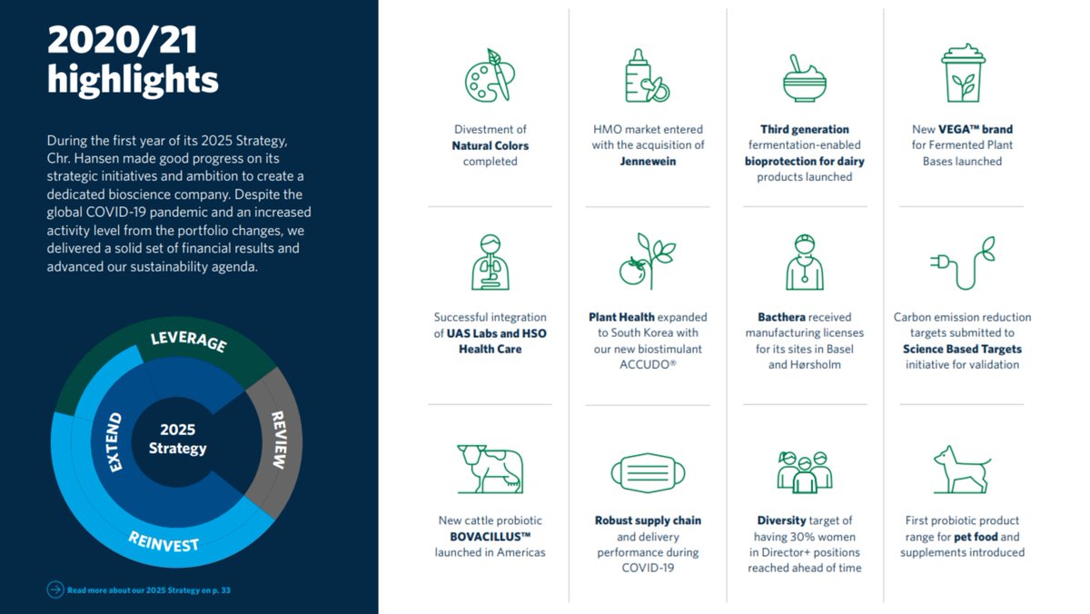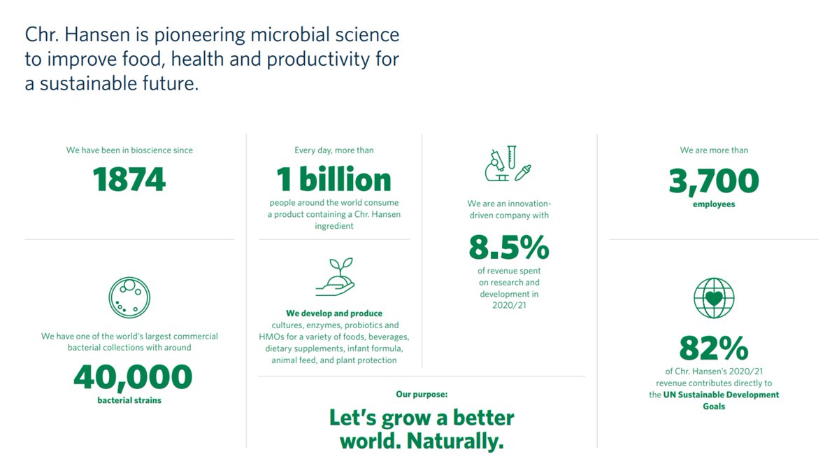 LTM EBIT margin 27% Chr. Hansen is a uniquely positioned soon 150 year old global bioscience company that develops natural ingredient solutions for the food, nutritional, pharmaceutical and agricultural industries.
